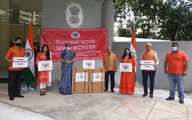 H.E Suchitra Durai, Ambassador of India to Thailand, alongside office bearers from the Vishwa Hindu Parishad (VHP) led by Susheel Saraff, were pictured above making donations for COVID-19 relief. Till this date, VHP Thailand members have donated more than 50 oxygen concentrators to India. For more information, visit this page.