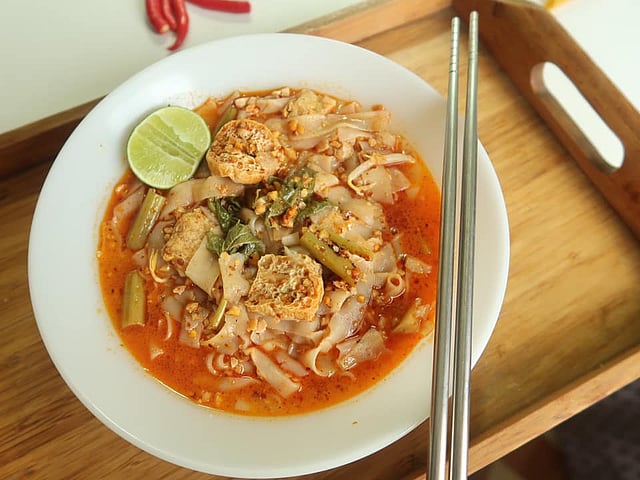 Embodying the saying, "It's better to do one thing well than ten things poorly," Kaek Kao Kua have been dishing up steaming hot bowls of vegan plant-based noodles since March. With prices starting at THB 96, a variety of noodle types are available ranging from sen yai to whole-wheat sen mee, and their bowls are topped with healthy ingredients like straw mushrooms, morning glory, bean sprouts, wontons, and tofu. FB and Instagram: @kaekkaokua