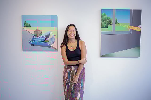 Meet 30-year-old Malini Aryapratheep, a dynamic figure in the health and wellness industry. Born and raised in Bangkok, Malini's career spans diverse fields, from her family's denim business to her current role as the marketing manager for Heights, a UK-based startup in the health and wellness space. Her creative inclinations can be traced back to her father, an abstract artist whose work has significantly impacted her artistic sensibilities. Her partner, Louis Supple, she co-manages Supples Gallery in Bangkok, a vibrant space that bridges the cultural gap between Southeast Asian and European artists, where we met to talk about her style. As we admired the solo exhibition of works by Thanapol Tanyapipatkul, I admired how Malini's style blended seamlessly with the colourful and deeply personal paintings, which critiqued the political sphere of the artist's home. Similar to the art around us, which was inspired by the artist's background, Malini's fashion, which blends comfort and colour, is deeply influenced by her eclectic background and passion for unique fashion statements.