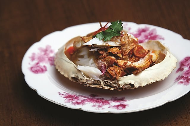 The intimate space merges contemporary elements with traditional Thai touches in the form of tiled floors, and ceramic patterned bowls, plates, and pots that fill up the open shelves. The centrepiece of the room is the open kitchen and its granite countertop that allows diners to observe the chefs preparing and executing each dish. Now that Thailand is experiencing its brief cold season, I recommend siting outside on the balcony framed by potted plants with views of the Charoenkrung area.