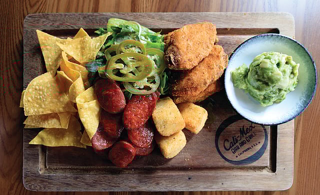 Starters like the Chips and salsa (B149) prepare you for the meat-heavy menu. The homemade corn chips are served with freshly made guacamole, and not one, but four salsas, all prepared in-house. Ranging from a mild salsa verde to the fiery salsa diablo, this gives diners the option to mix and match to suit their preferred palate. If chilli pepper dips aren't your cup of tea, Cali-Mex Bar & Grill also offers corn chips with Queso fundido (B329), a baked blend of mozzarella, Monterey Jack, and parmesan topped with chorizo that will have you floating in cheese heaven.