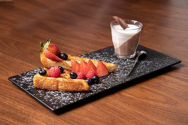 If you're a fan of sweet things for breakfast, order their French toast with vanilla and chocolate panna cotta (THB 259), which was one of my favourites of the morning because every bite melted in my mouth. An elevated twist on the regular French toast, it is served with a creamy rich half-vanilla half-chocolate panna cotta and some berries that cut through the sweetness.
