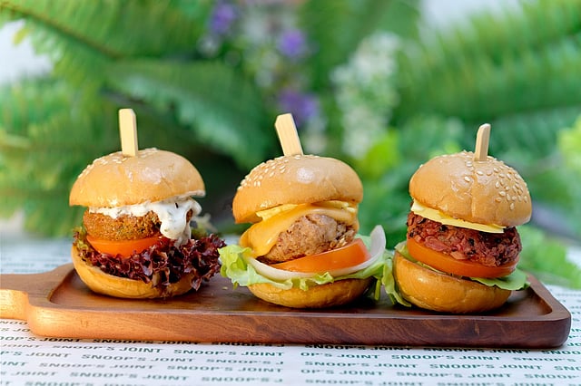 The restaurant is located in a small side soi in Sukhumvit 21, and as I walked in, I noticed a green neon sign that reads "We followed our hearts and it led us here!" on their white walls, along with plants hanging from the ceiling. The space felt welcoming, vibrant, and fresh. As I sat down, Jyot "Pranee" Sachdev, the founder, tells me how the name and branding is inspired by their puppy, who is called Snoop, and therefore the restaurant is pet-friendly. As a vegetarian herself, she wanted to offer many different burgers that are flavourful in their own way. Jyot also tells me how they are able to host big groups, and can provide Jain options with prior notice.