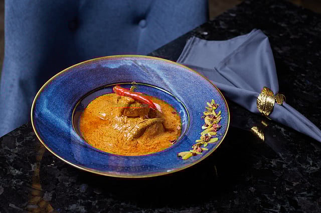 As I sipped on a comforting mug of masala chai, plate upon plate of appetisers were set in front of me. We chose to start with their Sunehri khasta (THB 375), a dish similar to a spring roll, packed with vegetables and rolled in sevian, giving it a crispy outer layer. While I savoured that, the non-vegetarians around me dug into a plate of Raunaq-e-seekh (THB 495), made from tender minced lamb. They informed me that it was perfectly spiced, and tasted particularly good with fresh coriander chutney. I was especially eager to try the Teh te teh kebab (THB 475) when I laid my eyes on the three-layer paneer stack, and as I sliced into it to take a mouthful, I was hit with a subtle spice that cut through the creamy paneer. For an added Indian kick, have it with the pickled onions served on the side. Another dish that looked intriguing was their Truffle malai tikka (THB 495), made with chicken. My colleagues praised how it melts in your mouth, with the truffle adding extra creaminess and its distinctive flavour to the dish, without being overpowering.