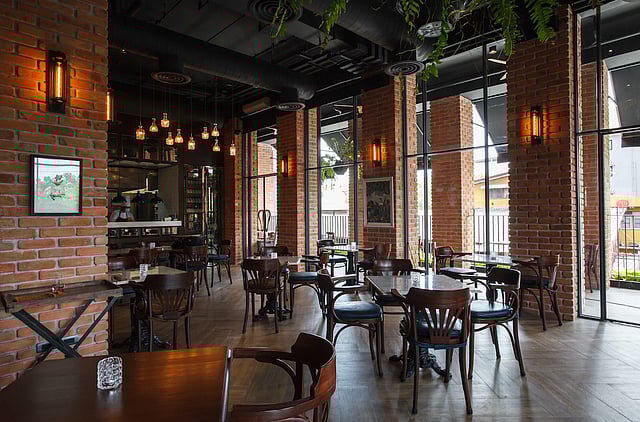 The Londoner is now a three-storey establishment. The first floor embodies the classic pub atmosphere with the exposed brick walls and leather sofas that made the original location so popular. Meanwhile, the second floor and rooftop terrace exude a contemporary vibe combining black and white patterns with dark wooden furniture and industrial light fixtures. The walls and staircases are adorned with whimsical art pieces and giant murals inspired by British emblems, a unique aspect that creates a casual and fun ambiance.
