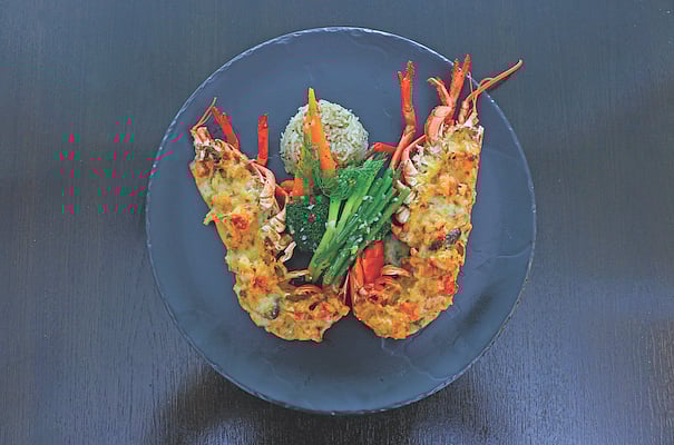 One of Chef Kenny's signature dishes is the Cold seafood platter for four (B5,800), which includes a variety of imported oysters, Canadian lobsters, tiger prawns, langoustines, legs of king crab and mussels, presented with a range of dipping sauces. The platter is delivered to the table from the Live Seafood Bar, and the selection is a testament to the establishment's commitment to fresh and diverse seafood options.