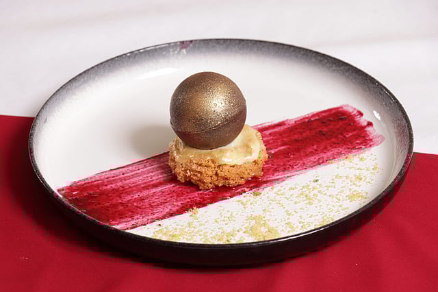 The Moilee course was, true to its name, a Kerala-style king prawn curry made with coconut milk-based gravy which was aromatic in the extreme and warmed us from the inside out; a true comfort dish. Make sure to pair it with the generous portion of fragrant milagai podi rice that is served with the course. The final main was the Land course, comprising of a lamb riblet elegantly presented with flecks of gold foil, and an artistic composition of deep-fried baby potato and mash for a fusion twist. Perfectly prepared, the lamb was fall-off-the-bone tender and flavourful without being too overpowering.