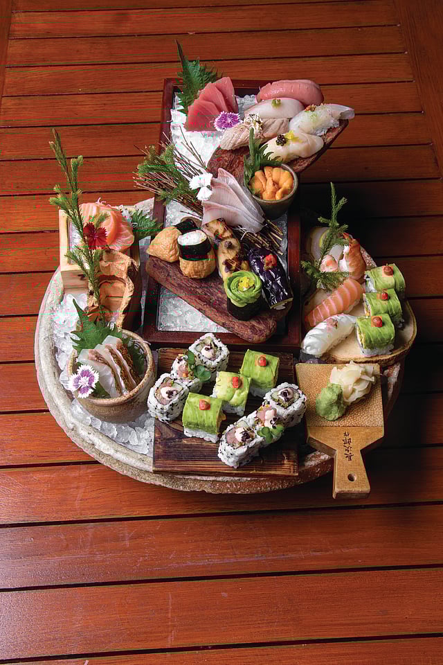 Zuma's biggest standout factor is its blend of indoor and outdoor space. The main dining room boasts a mix of round and long wooden tables, each with views of the traditional robata grill and sushi counter, and the walk-in wine cellar that encloses the private lounge seating. The indoor dining room seamlessly flows out to create the outdoor terrace thanks to foldable doors that open up the partition between the two spaces entirely. During our visit, we dined on the oasis- style terrace that made us forget we were dining in Bangkok's CBD altogether.