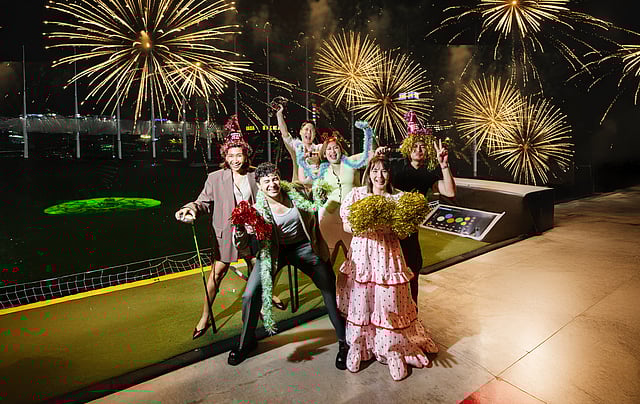 The night heats up with a live DJ spinning nonstop party anthems, setting the perfect rhythm as you swing, dance, and laugh your way toward midnight. And when the clock strikes twelve, the sky above Topgolf will erupt in a dazzling fireworks show — the grand finale to a night you’ll remember long after the champagne’s gone.