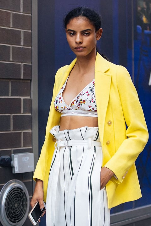 Crop-tops are so yesterday! Time to swap them out with the new style in town, the bralette. Another item to survive tropical heat, this once innerwear-only item has made headlines this season. Available in a variety of fabrics, it's a statement piece that can be easily layered. TIP: Pair one with a bold blazer for a bewitching business-casual look!