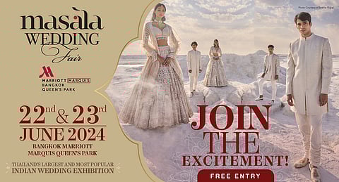 Whether you're searching for the perfect wedding outfit, want to know the best that Thailand's hospitality industry has to offer, on the lookout for all the preeminent F&B catering spots in town, or simply wish to bask in the infectious energy and opulence of a big, fat, Indian wedding, make sure to mark your calendars as there's less than a month to go till the Masala Wedding Fair! Thailand's biggest and most popular Indian wedding exhibition is back for its 11th Edition, and it's set to be the best one yet. Happening on Saturday, 22 June, and Sunday, 23 June, at the luxe and expansive Bangkok Marriott Marquis Queen's Park, the fair will bring together over 105 booths featuring the finest in ready-to-wear and couture fashion, high-end jewellery, delectable cuisine, and innovative beverages.